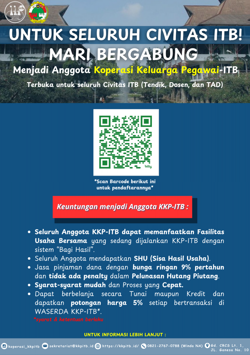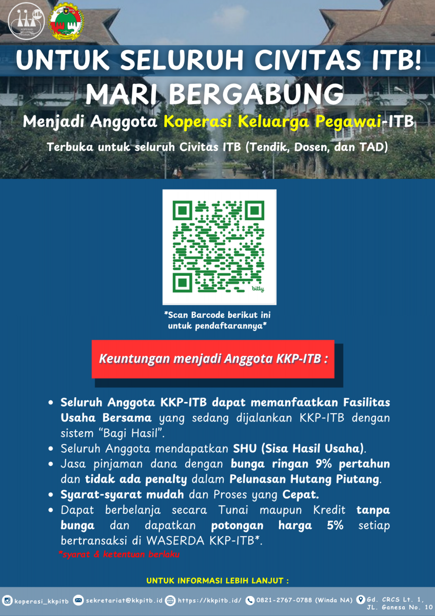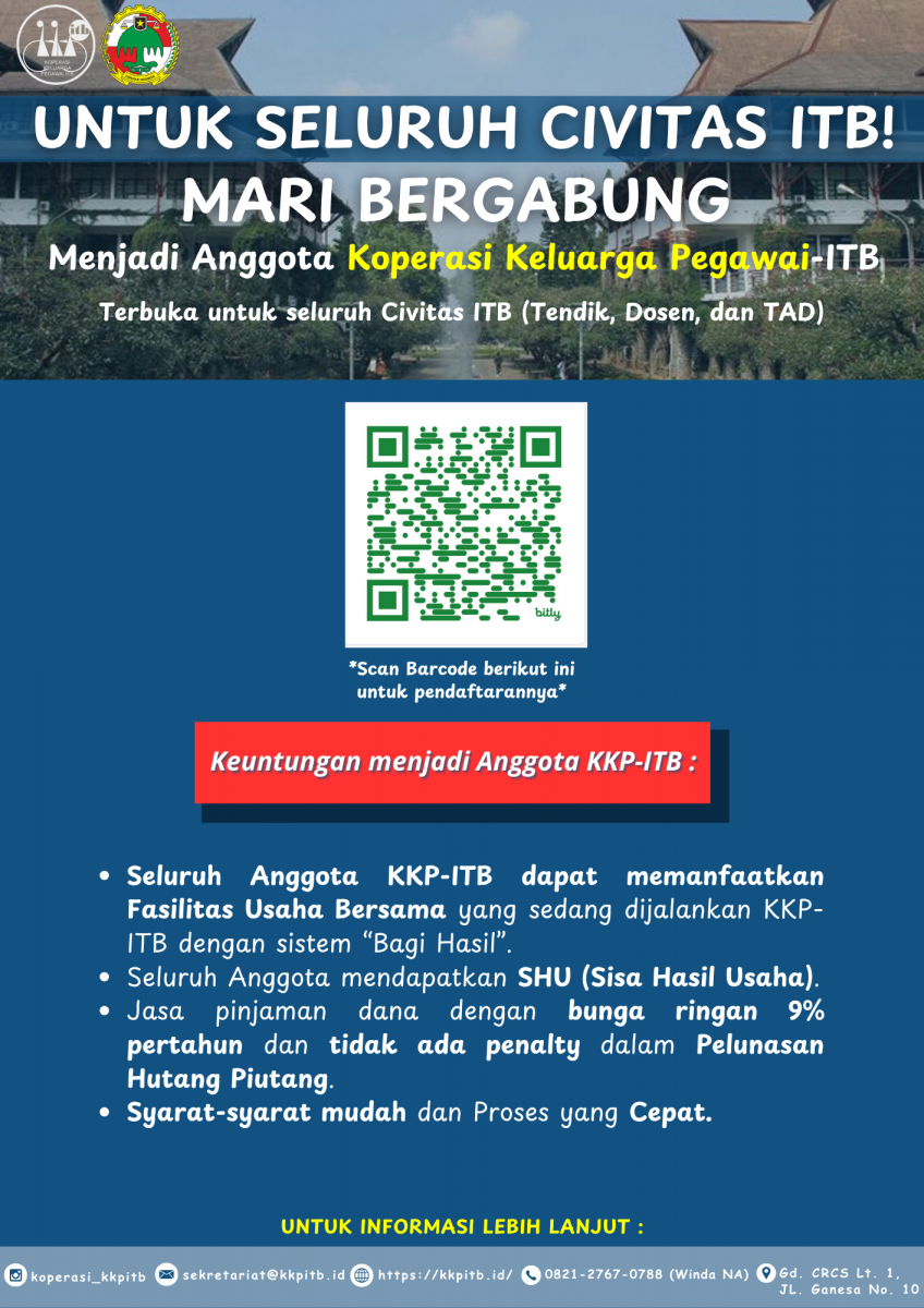 Jadilah bagian dari Koperasi Keluarga Pegawai ITB dan nikmati manfaatnya! Untuk informasi lebih lanjut, hubungi kami di 0821-2767-0788 (Winda NA)
